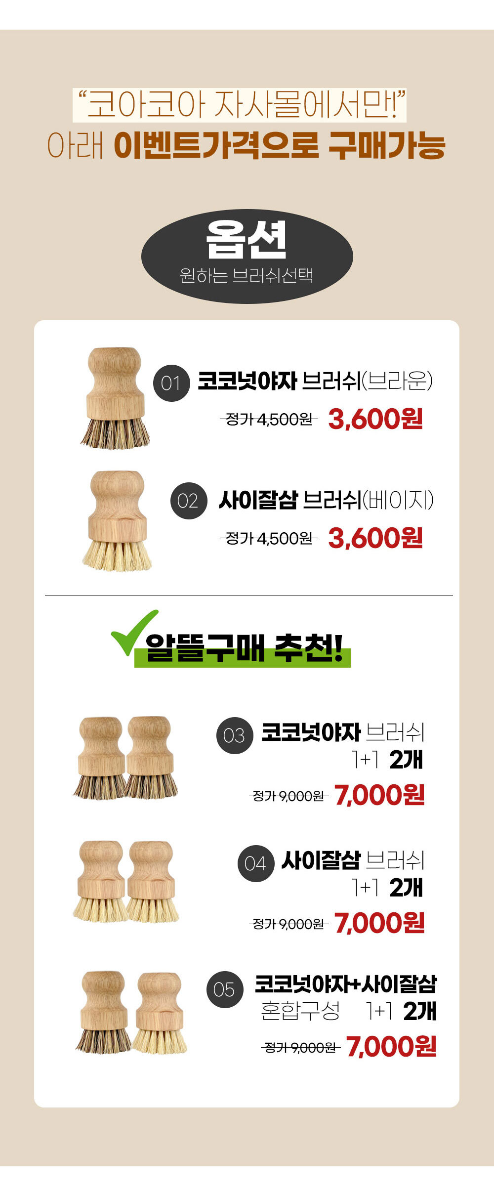 코코넛 야자솔 100% / 사이잘삼* 옵션에서 브러쉬 종류를 선택해주세요.