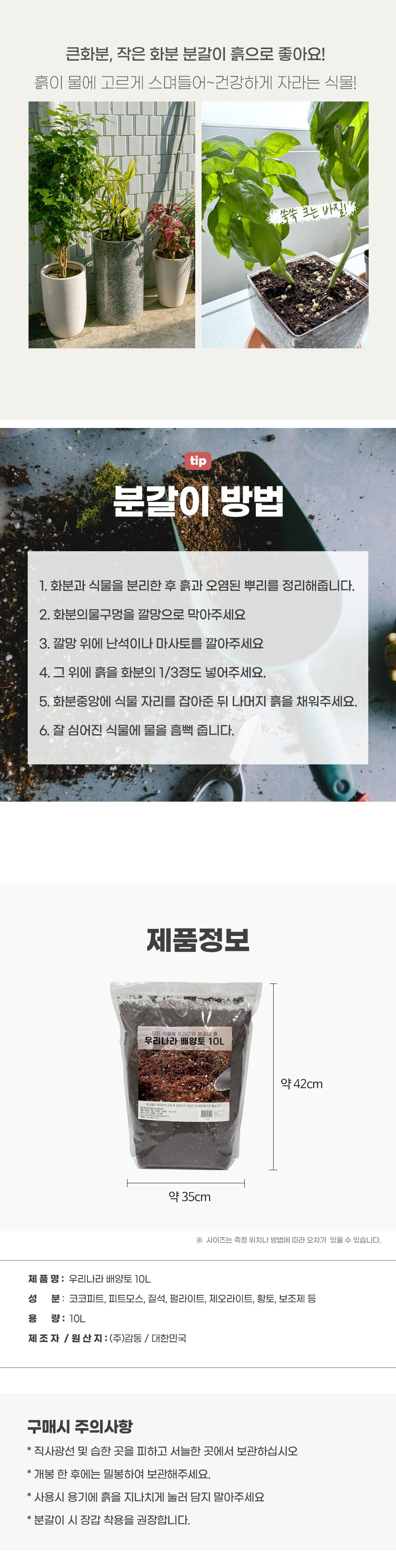 우리나라 배양토 분갈이 배수가 잘되는 흙 10L