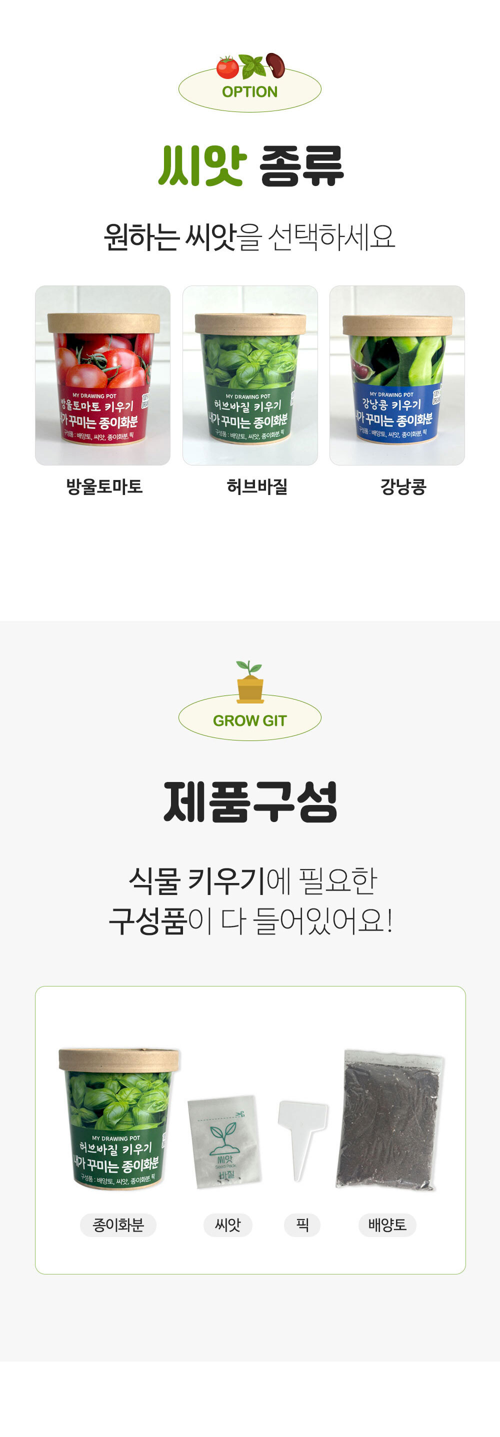종이화분+배양토+씨앗+픽 구성