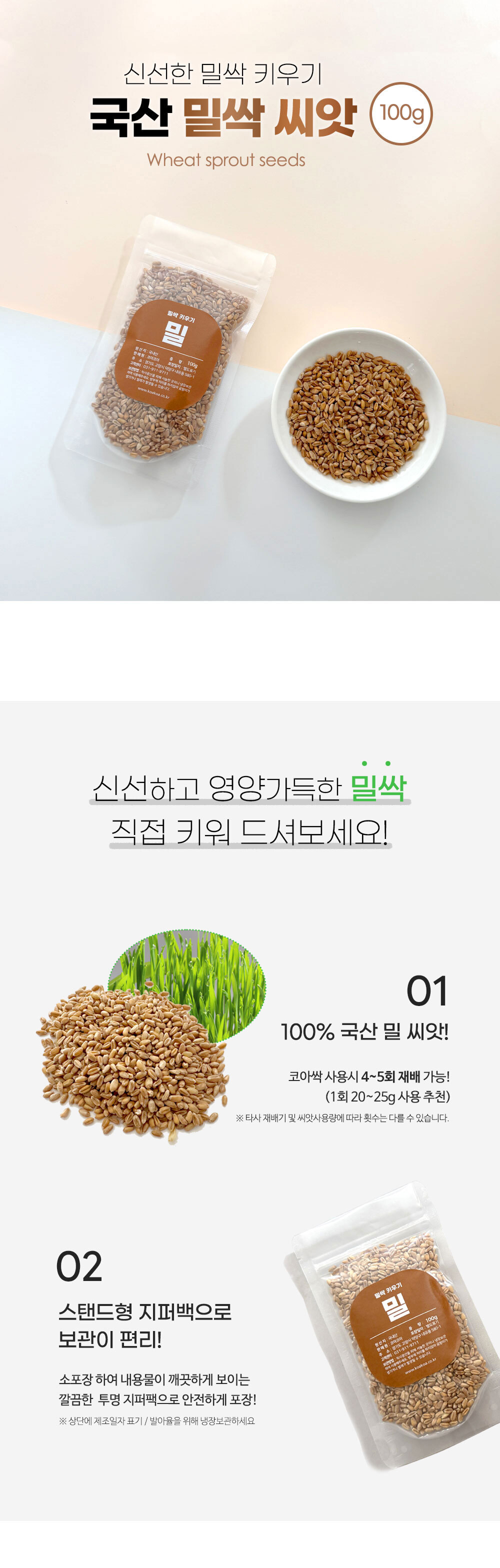 [코아홈작] 국산 밀싹 씨앗 100g 지퍼백 소포장